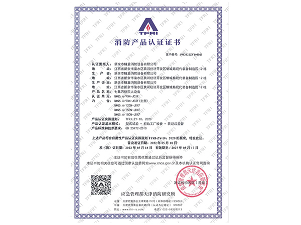 | 滅火劑充裝密度 | ≤1080kg/m3 |